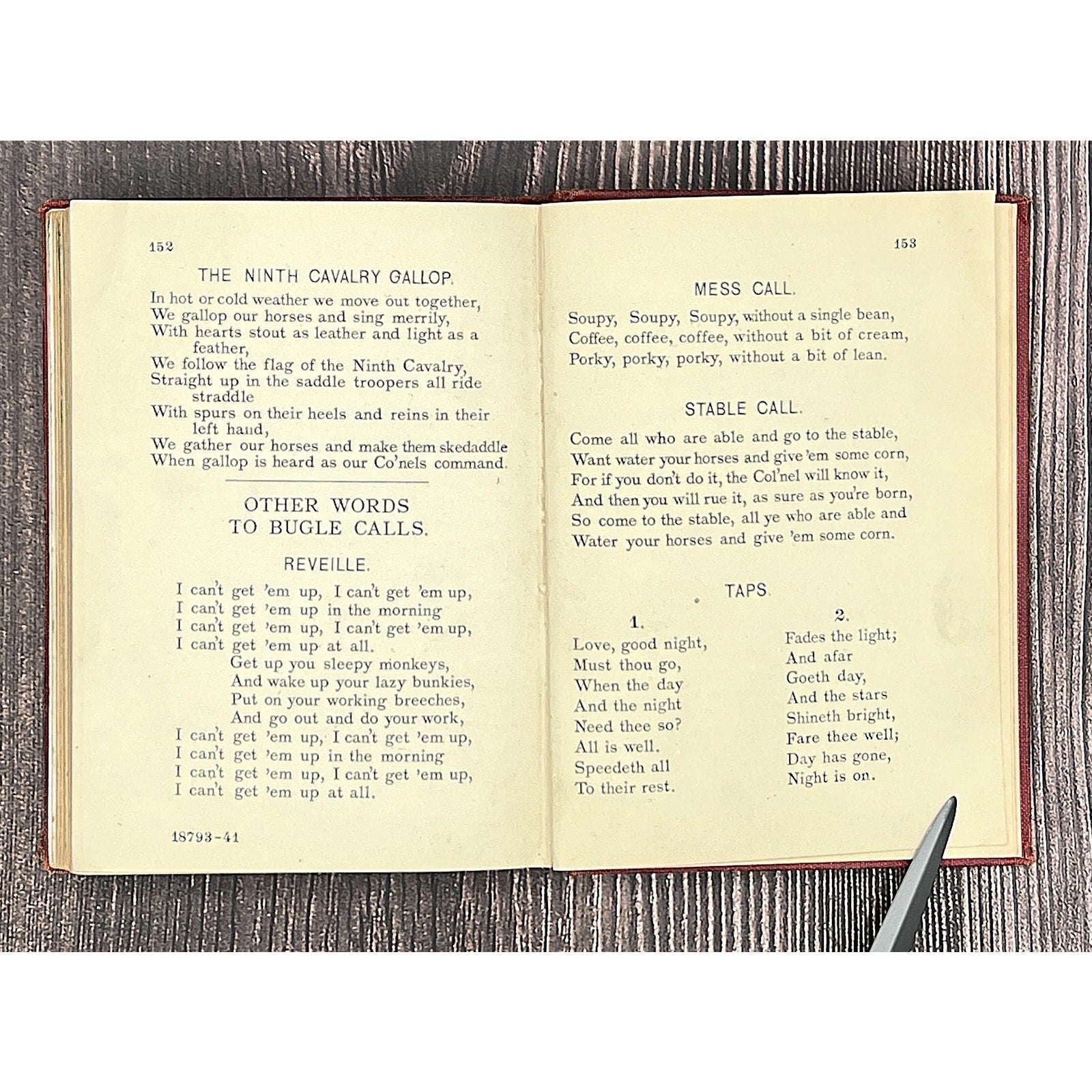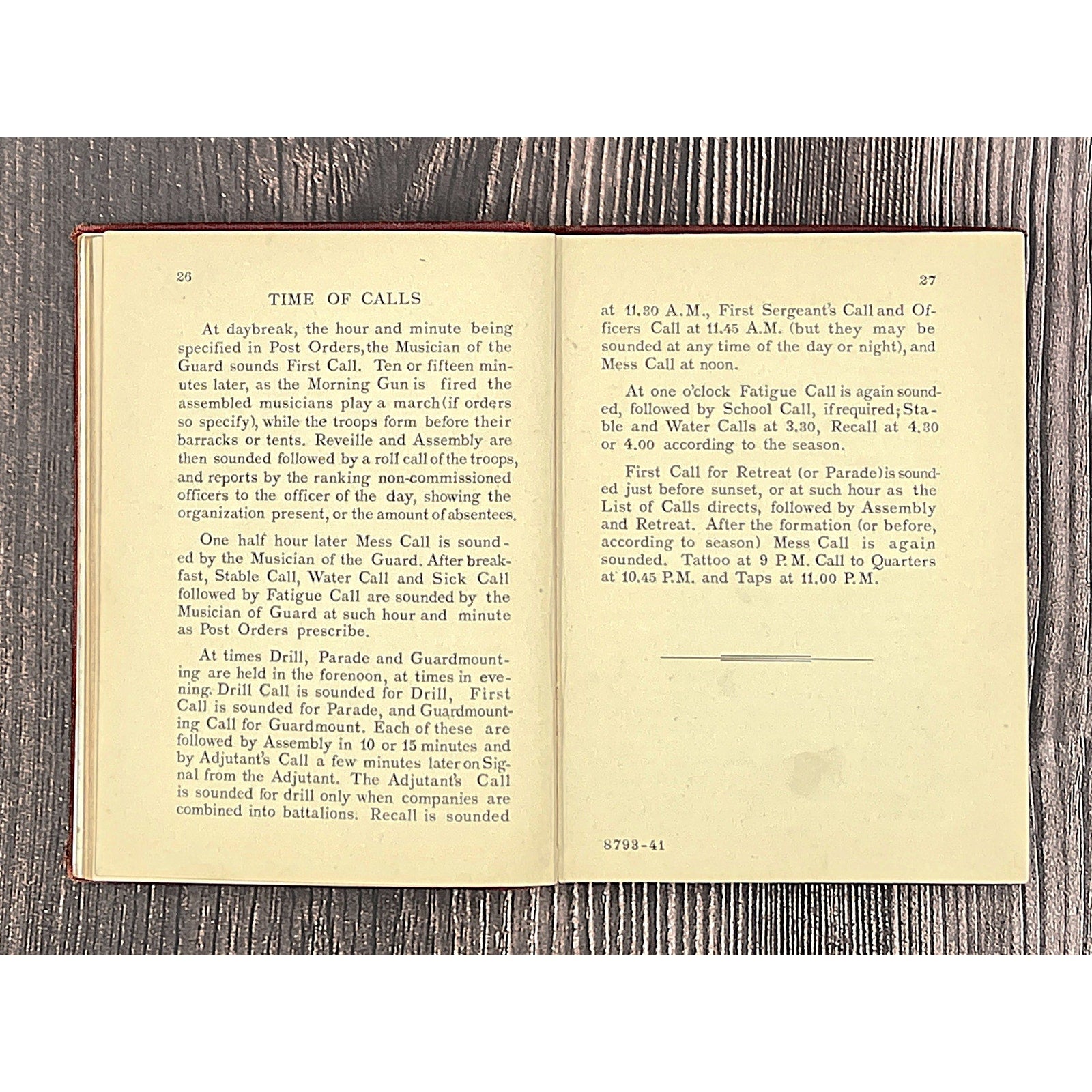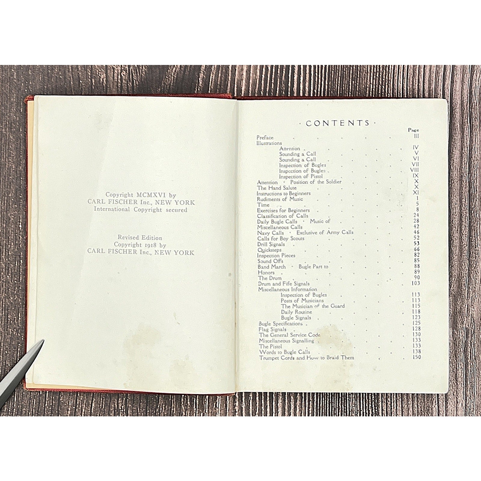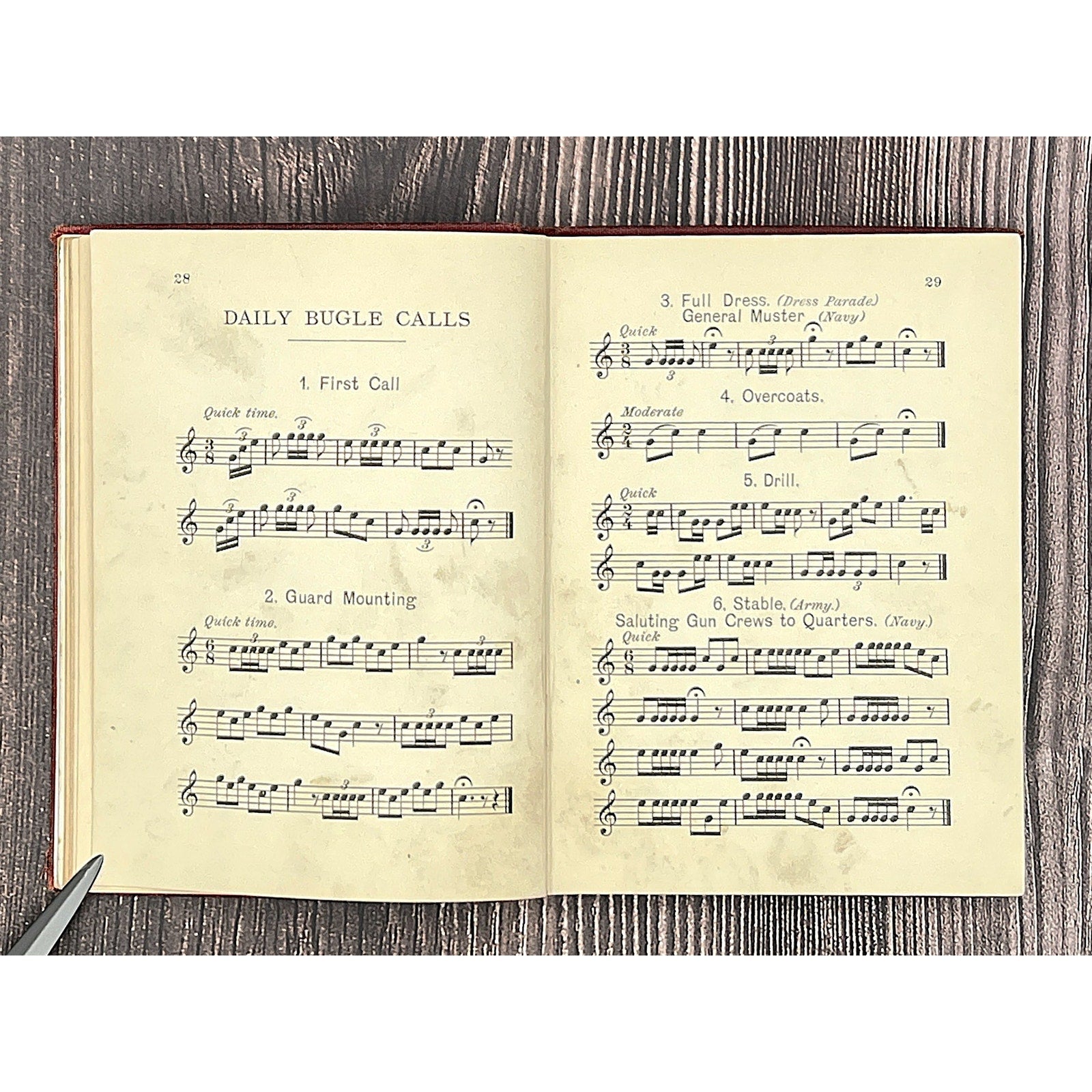 The second book, "Complete Instructive Manual for the Bugle, Trumpet, and Drum" by V. F. Safranek, Bandmaster for the United States Army, is a rare and coveted edition published by Carl Fischer. It presents a comprehensive guide to the signals and calls utilized by multiple branches of the United States military, including the Army, Navy, Marine Corps, Revenue Cutter, National Guard, and Boy Scouts' Service.
