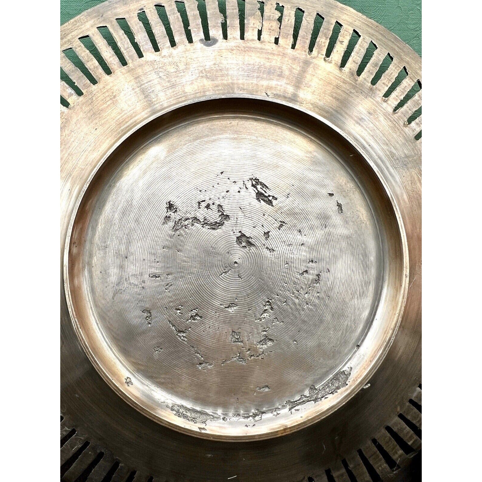 For sale is a beautiful Italian brass bowl with intricate reticulated design. This vintage piece is perfect for any collector of metalware or brass items. Crafted with attention to detail, this bowl will surely make a statement in any room. It is in generally good condition with some petina and signs of wear. It measures 9 inches in diameter and weighs 1 lb 14 ounces.