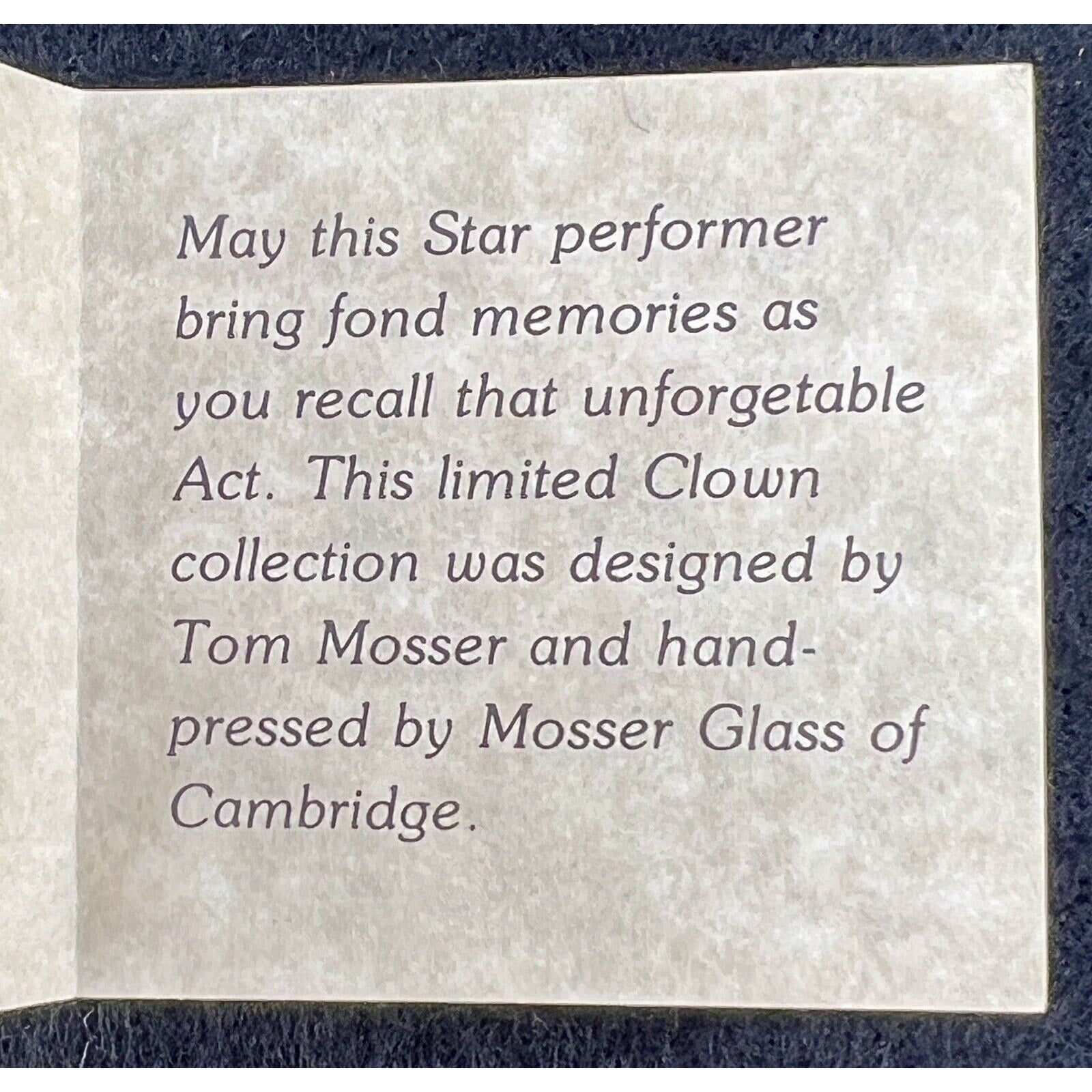 MOSSER GLASS CLOWN ALLEY THE PERFORMER SAMBO OHIO 1982 W BOX- 4TH IN SERIES