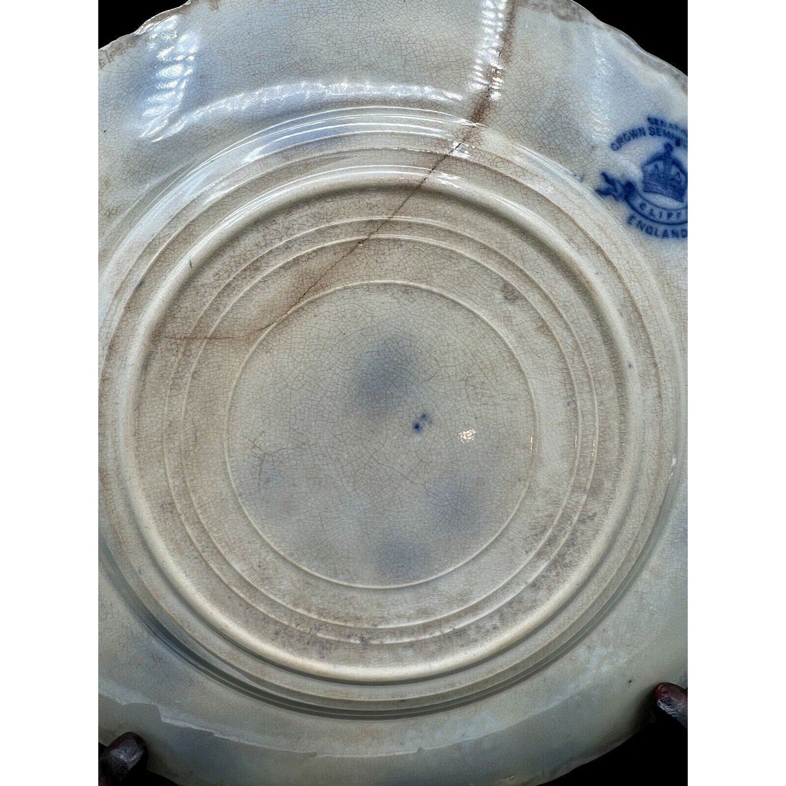 SENATOR CROWN SEMI-PORCELAIN FLOW BLUE PLATE, CLIFF ENGLAND, 1878-1904